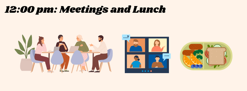 If I have any meetings, they’re typically over lunch. I work closely with a few local organizations, so me and their sales representative will go off-site and attend meetings together. Other times, I’ll have Zoom meetings with clients who aren’t local. I like to schedule meetings in the afternoon to give me time in the morning to tie up any loose ends and prepare for the meeting.